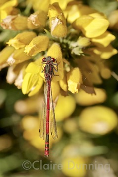 large red damselfly on gorse